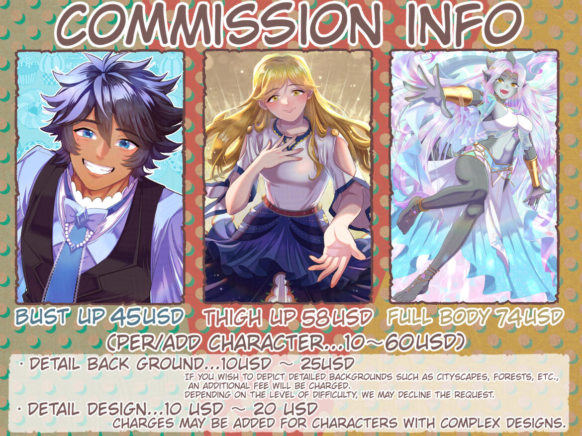 If you would like your commission to remain private (secret commission), an additional fee will be required.Please note that the artwork may be used in media that generates profit, such as publications (including doujinshi).